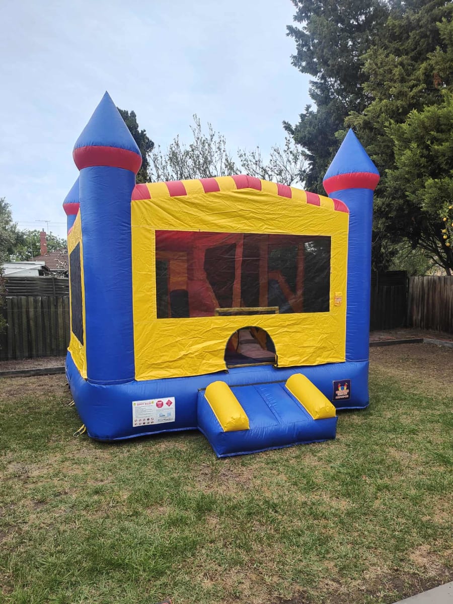 Bring endless fun and excitement to your party with our vibrant Classic 4x4 with Slide! This eye-catching jumping castle features a classic red, blue, and yellow castle design complete with an exhilarating slide inside—guaranteed to be the highlight of any celebration. Whether you're planning a birthday party, school fete, or community event, this bouncy castle is the perfect centerpiece to keep kids entertained all day long. 🎈🎉