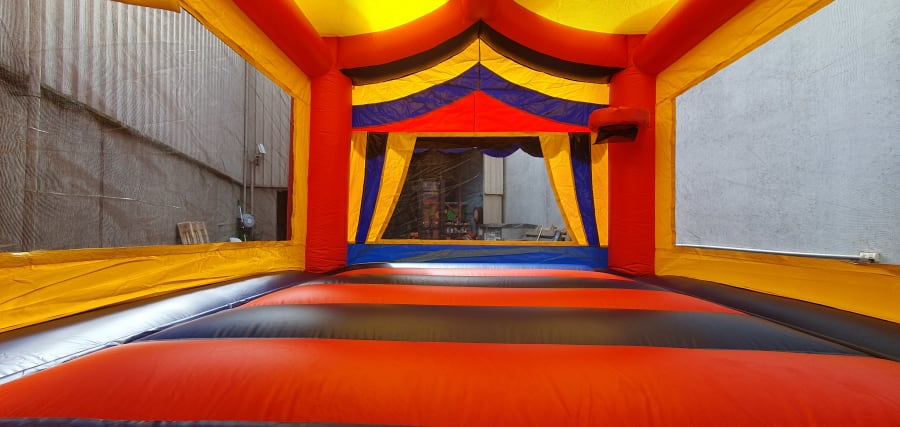 This circus themed jumping castle can be a lot of fun for any event. From back yards to school carnivals and fates. Such a bright and colorful design helps make the experience exciting and thrilling for everyone. The jumping castle provides a safe and controlled environment for children to jump and play, which is not only fun but also great exercise.